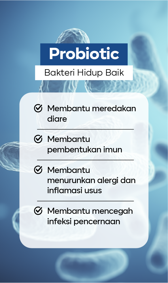 Probiotik (Bifido & Lacto) : Perbaiki mikrobiota usus.